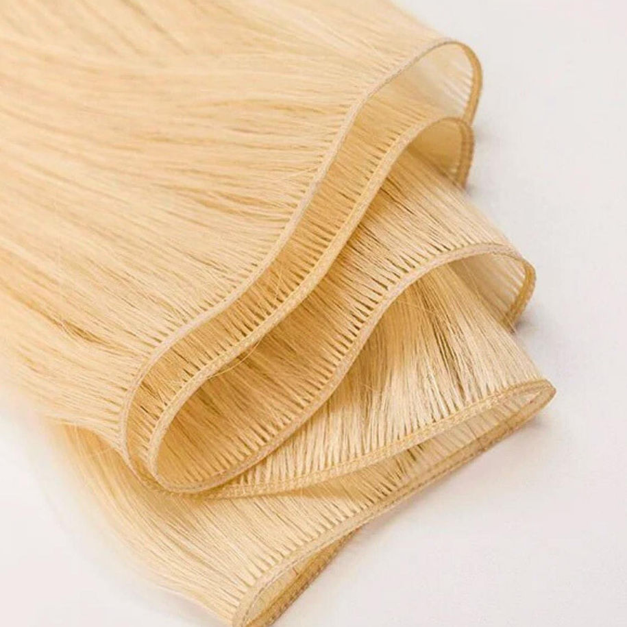 These wefts are stylist-approved for their quick application, discreet finish, and all-day comfort. They can be installed using a variety of methods depending on your style goals and stylist's preference. Commonly sewn in at the salon or glue-bonded to a cap for a quick weave at home.